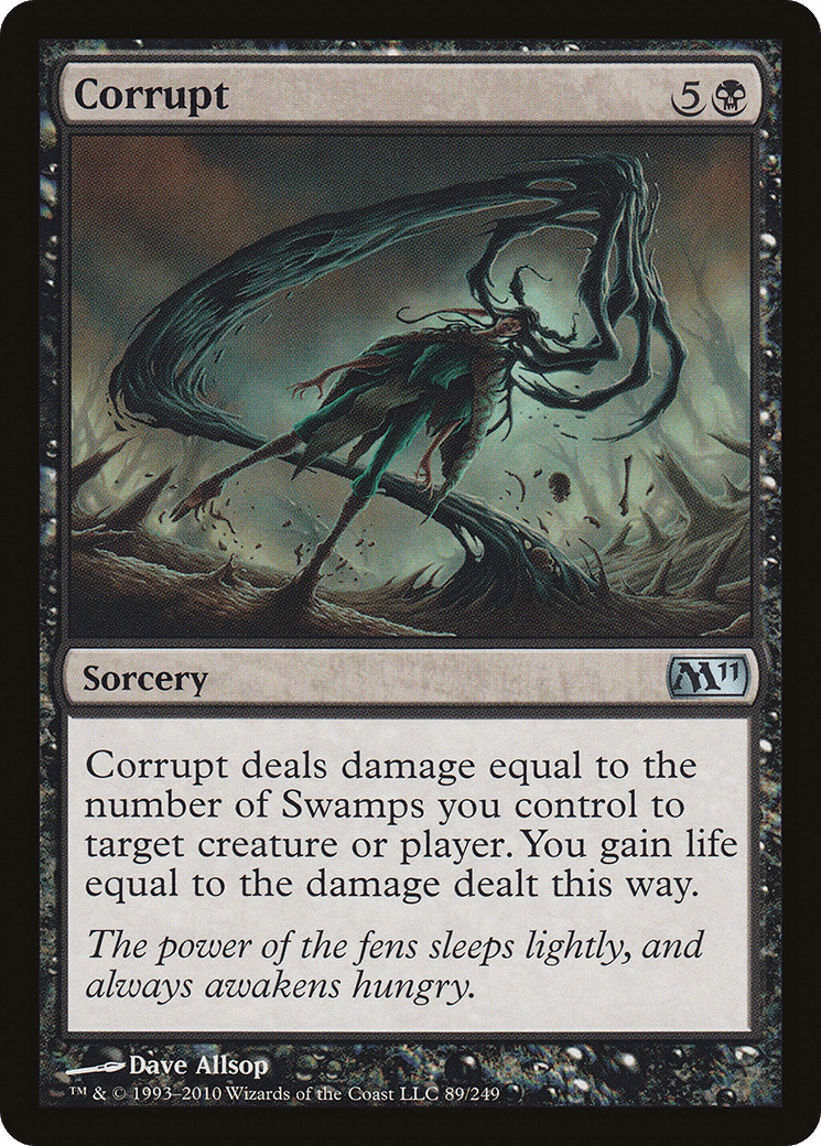 Corrupt deals damage to any target equal to the number of Swamps you control. You gain life equal to the damage dealt this way.