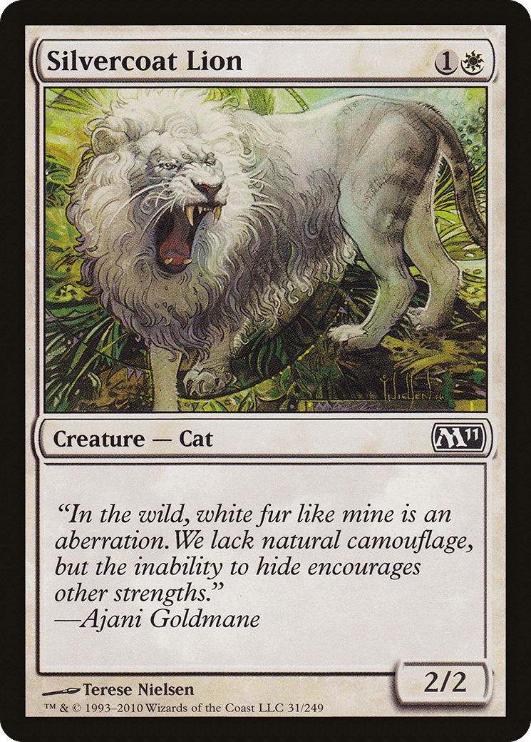“In the wild, white fur like mine is an aberration. We lack natural camouflage, but the inability to hide encourages other strengths.” -Ajani Goldmane