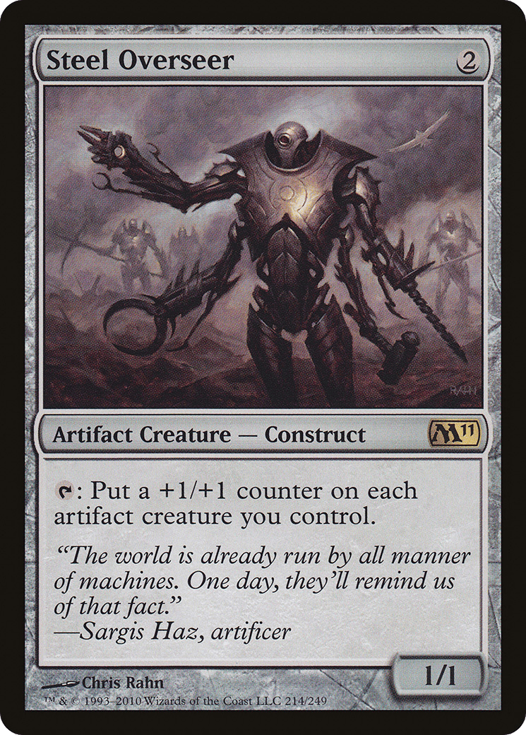 {T}: Put a +1/+1 counter on each artifact creature you control.