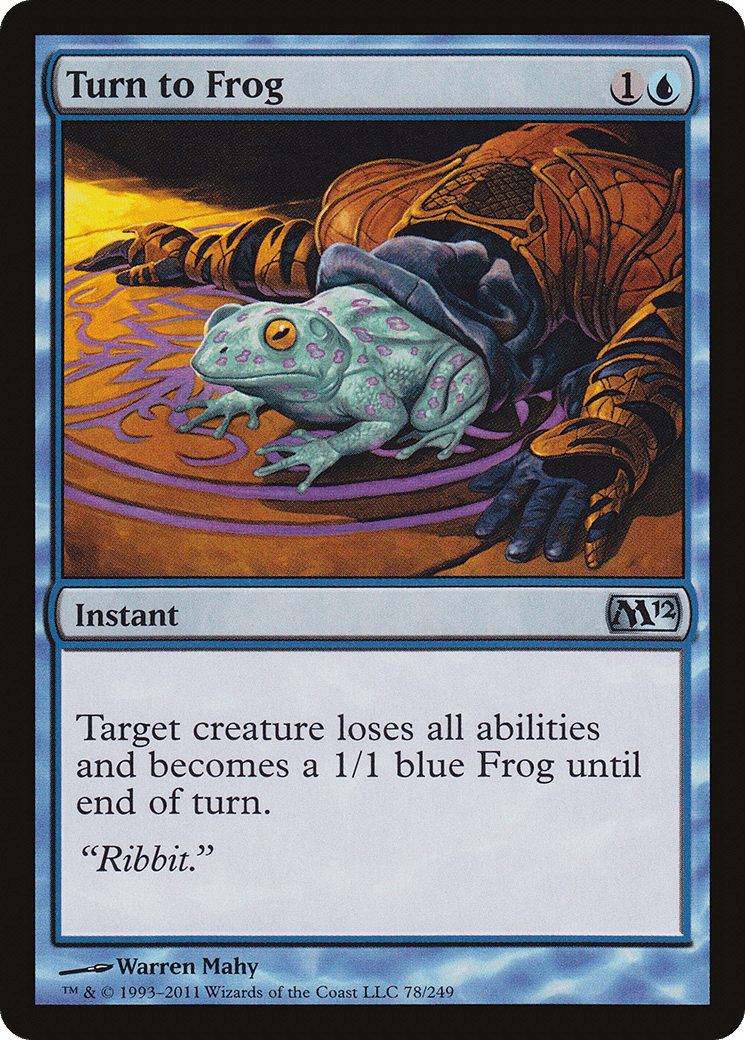 Until end of turn, target creature loses all abilities and becomes a blue Frog with base power and toughness 1/1.