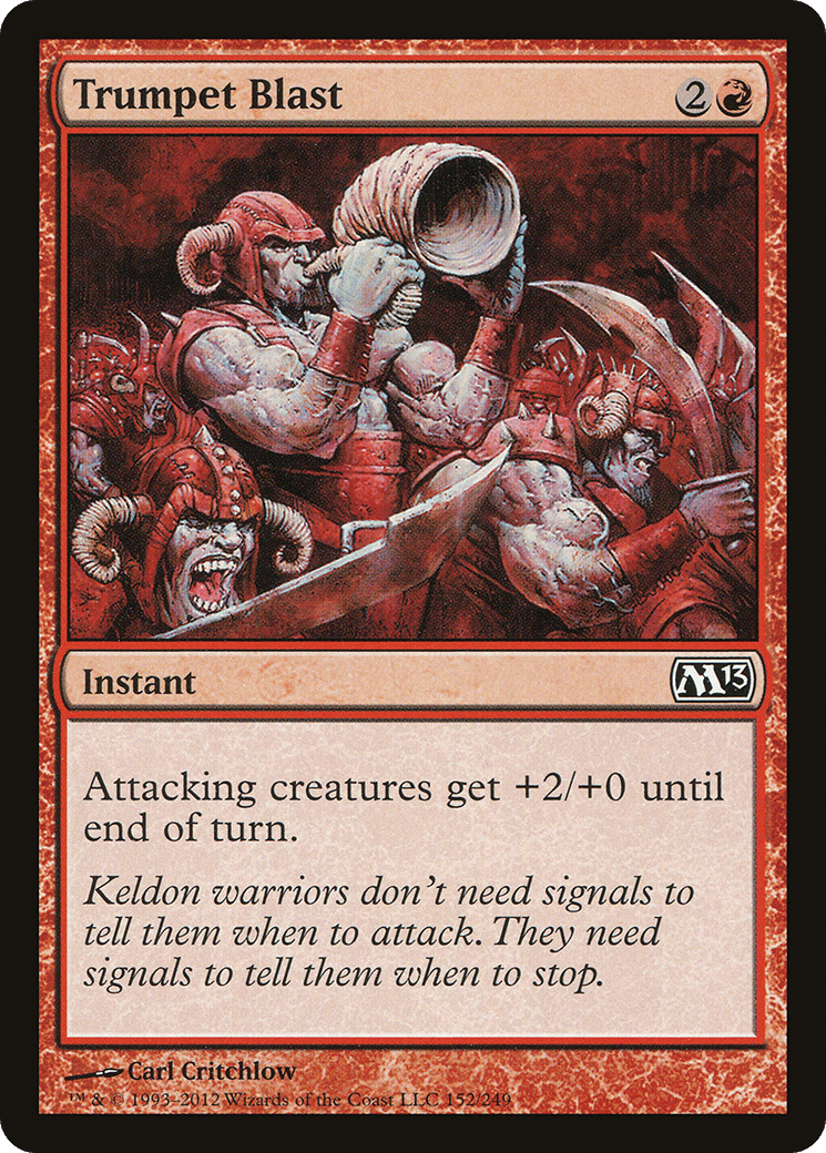 Attacking creatures get +2/+0 until end of turn.