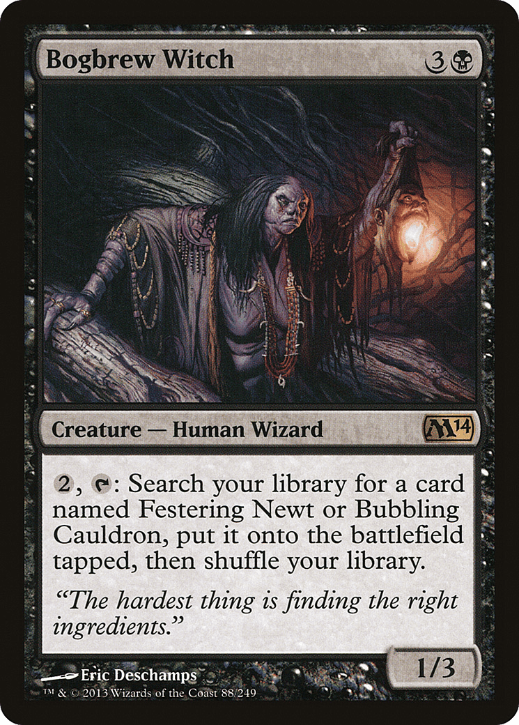 {2}, {T}: Search your library for a card named Festering Newt or Bubbling Cauldron, put it onto the battlefield tapped, then shuffle.