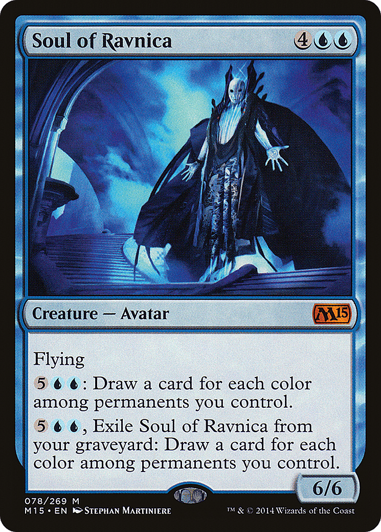 {5}{U}{U}: Draw a card for each color among permanents you control.