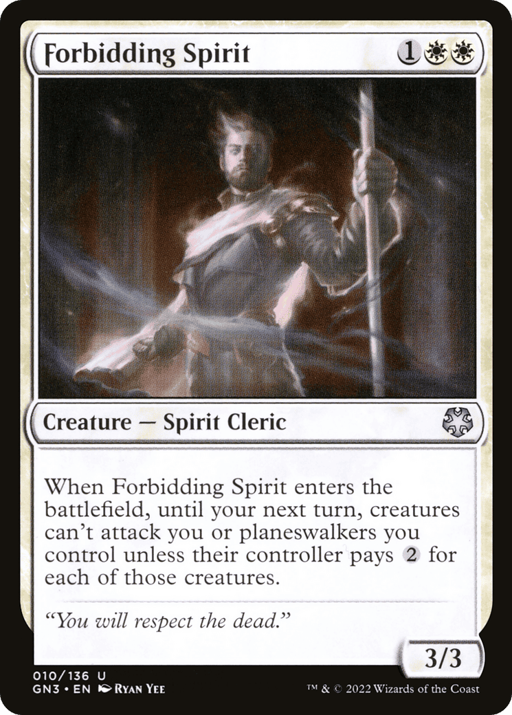 When this creature enters, until your next turn, creatures can’t attack you or planeswalkers you control unless their controller pays {2} for each of those creatures.