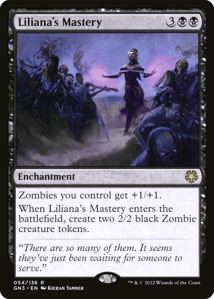 When this enchantment enters, create two 2/2 black Zombie creature tokens.