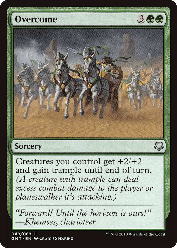 Creatures you control get +2/+2 and gain trample until end of turn. (Each of those creatures can deal excess combat damage to the player or planeswalker it’s attacking.)