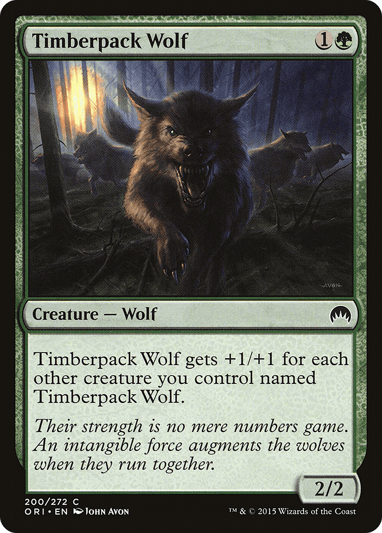 This creature gets +1/+1 for each other creature you control named Timberpack Wolf.