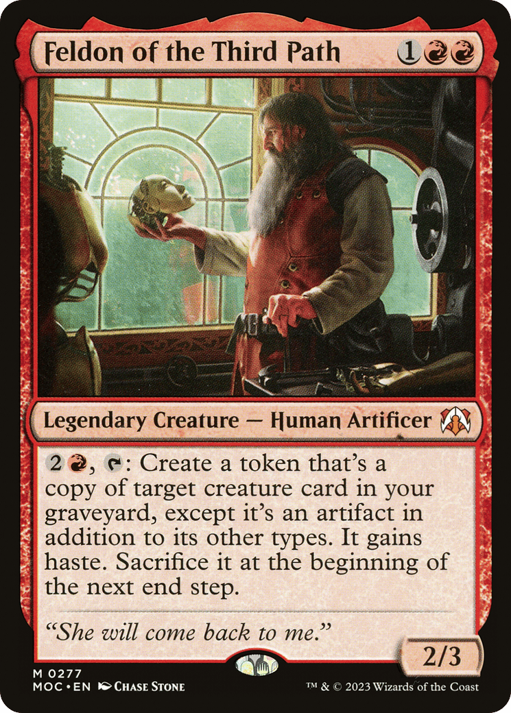 {2}{R}, {T}: Create a token that’s a copy of target creature card in your graveyard, except it’s an artifact in addition to its other types. It gains haste. Sacrifice it at the beginning of the next end step.