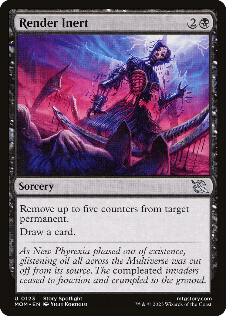 As New Phyrexia phased out of existence, glistening oil all across the Multiverse was cut off from its source. The *compleated* invaders ceased to function and crumpled to the ground.