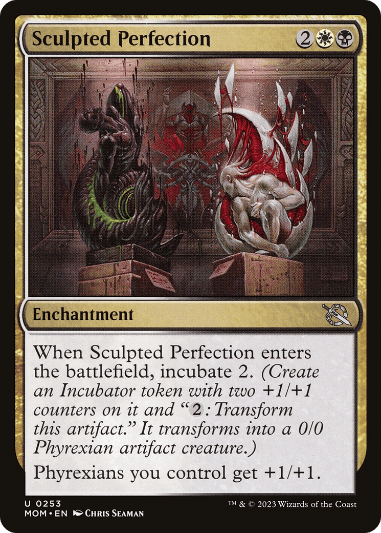 When this enchantment enters, incubate 2. (Create an Incubator token with two +1/+1 counters on it and “{2}: Transform this token.” It transforms into a 0/0 Phyrexian artifact creature.)