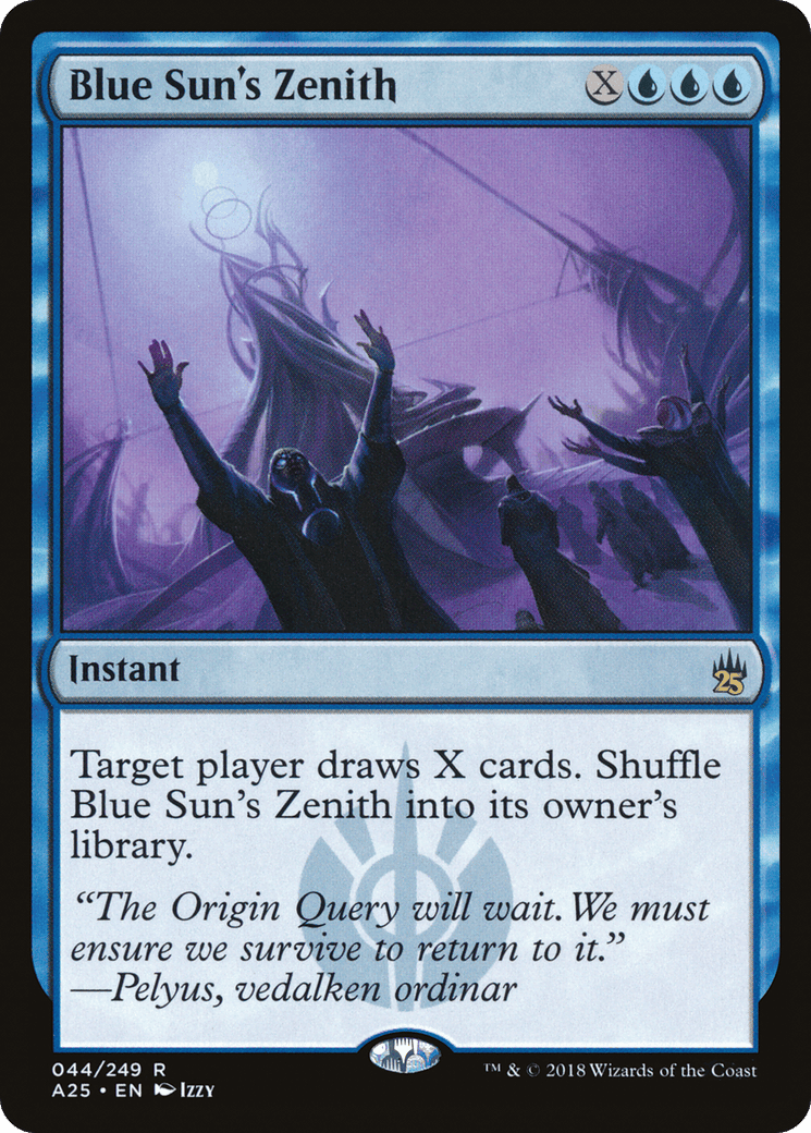 Target player draws X cards. Shuffle Blue Sun’s Zenith into its owner’s library.