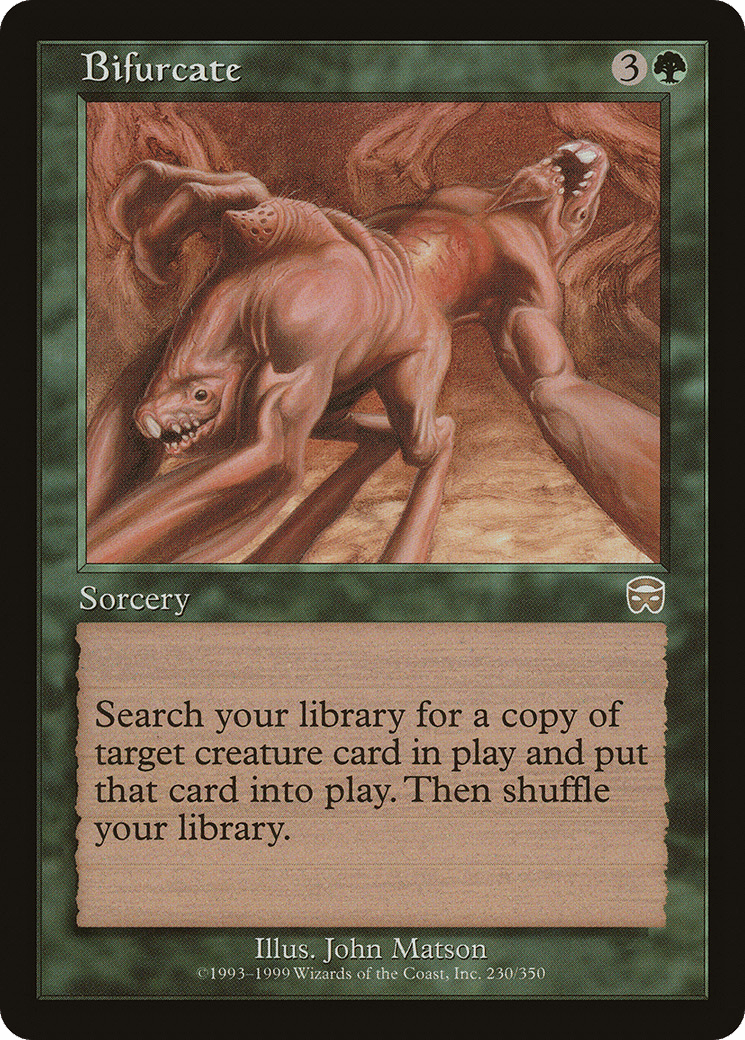 Search your library for a permanent card with the same name as target nontoken creature, put that card onto the battlefield, then shuffle.