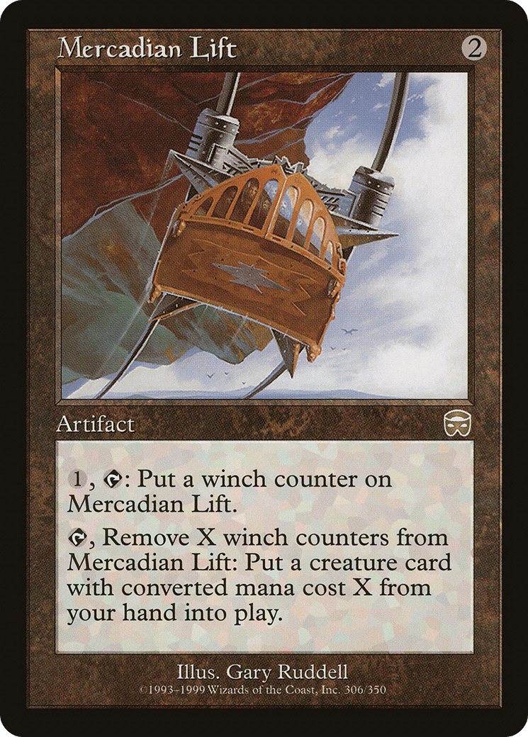 {1}, {T}: Put a winch counter on this artifact. {T}, Remove X winch counters from this artifact: You may put a creature card with mana value X from your hand onto the battlefield.