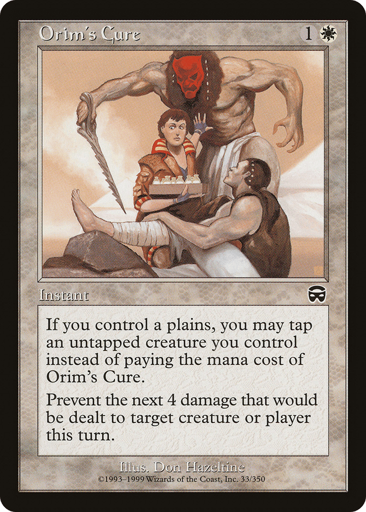 If you control a Plains, you may tap an untapped creature you control rather than pay this spell’s mana cost. Prevent the next 4 damage that would be dealt to any target this turn.