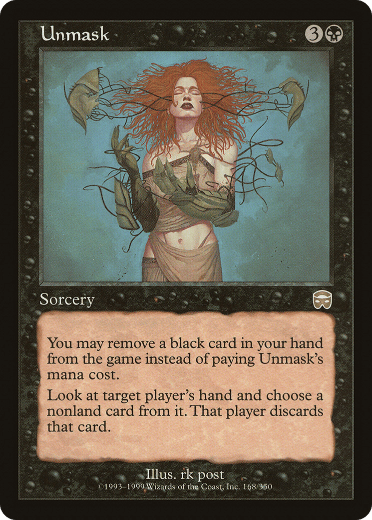 You may exile a black card from your hand rather than pay this spell’s mana cost. Target player reveals their hand. You choose a nonland card from it. That player discards that card.