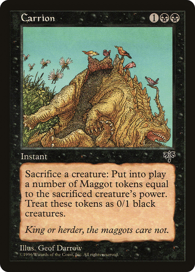 Create X 0/1 black Insect creature tokens, where X is the sacrificed creature’s power.