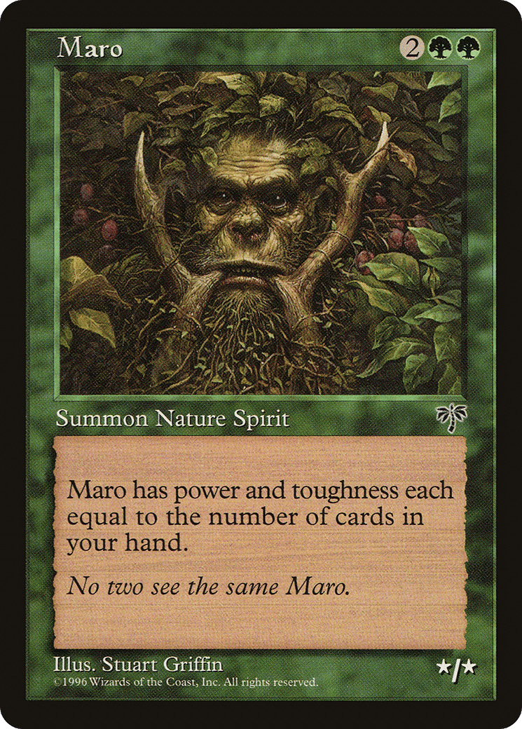 Maro’s power and toughness are each equal to the number of cards in your hand.