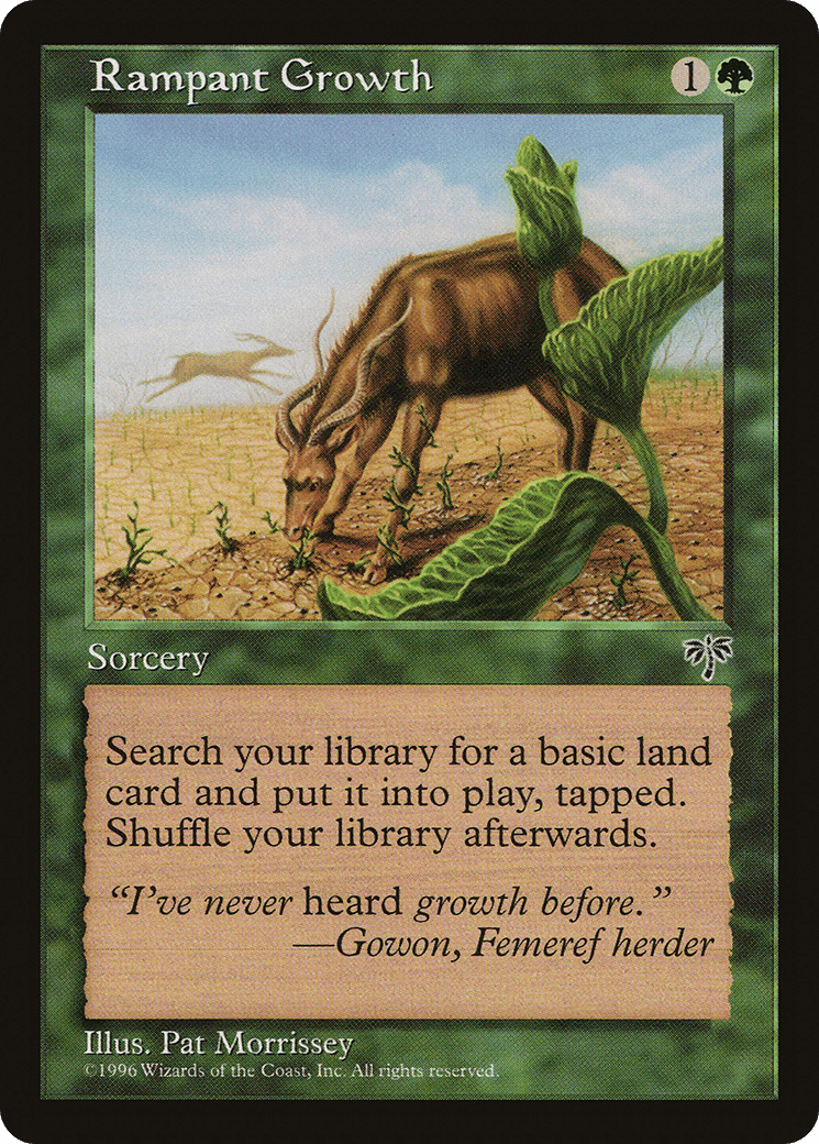 Search your library for a basic land card, put that card onto the battlefield tapped, then shuffle.