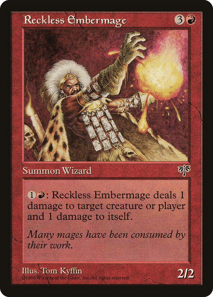 {1}{R}: This creature deals 1 damage to any target and 1 damage to itself.