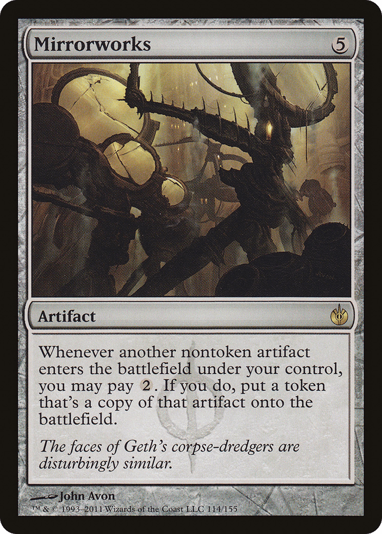 Whenever another nontoken artifact you control enters, you may pay {2}. If you do, create a token that’s a copy of that artifact.