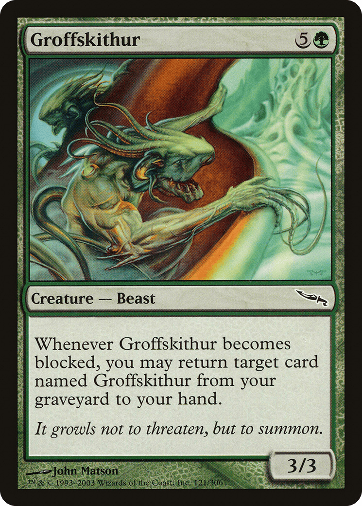 Whenever this creature becomes blocked, you may return target card named Groffskithur from your graveyard to your hand.