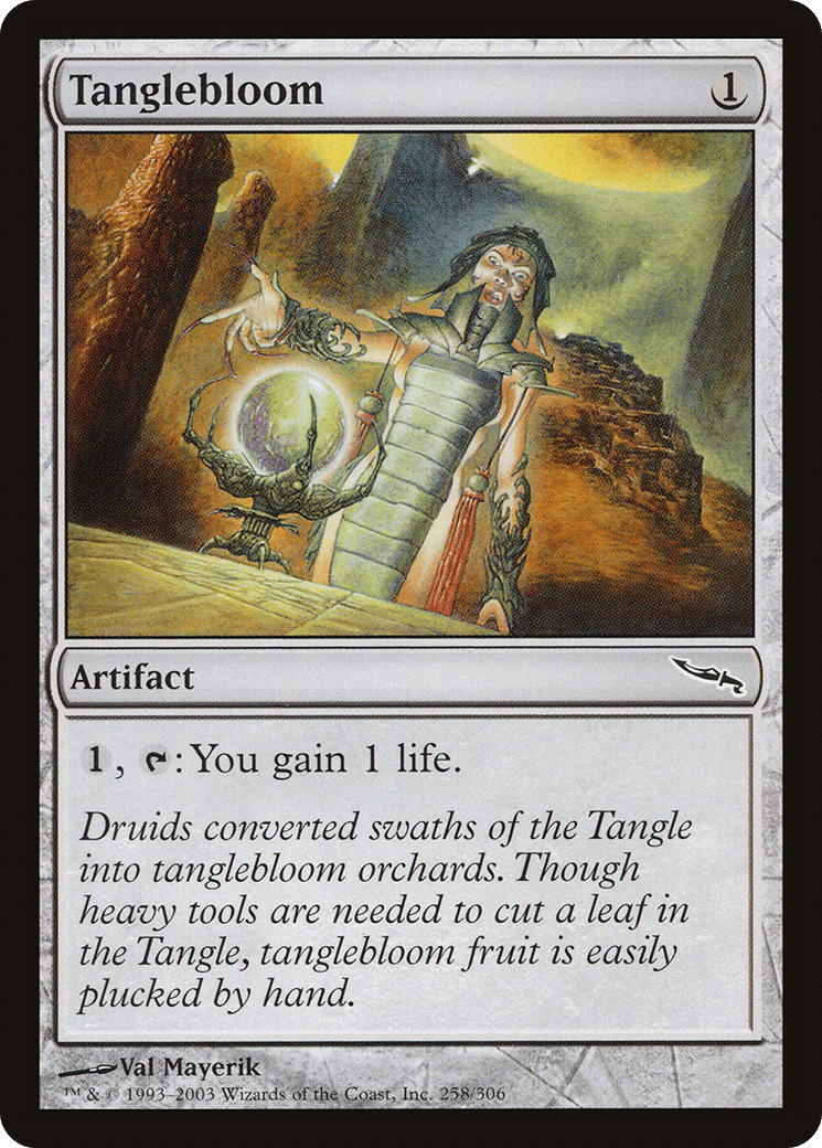 Druids converted swaths of the Tangle into tanglebloom orchards. Though heavy tools are needed to cut a leaf in the Tangle, tanglebloom fruit is easily plucked by hand.