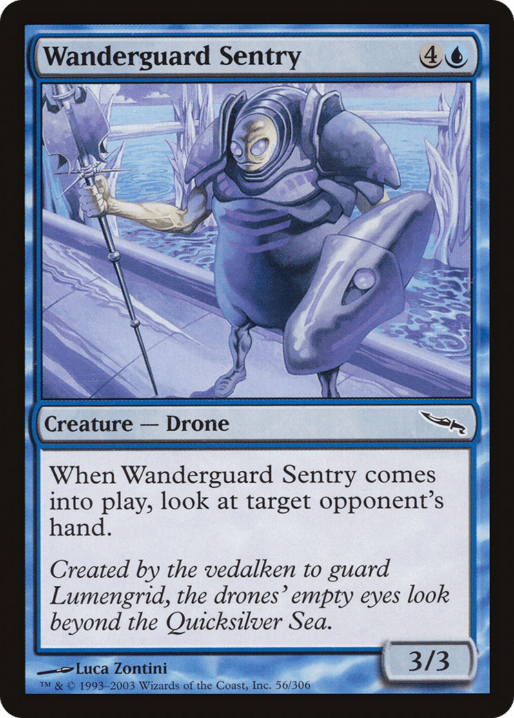 Created by the vedalken to guard Lumengrid, the drones’ empty eyes look beyond the Quicksilver Sea.
