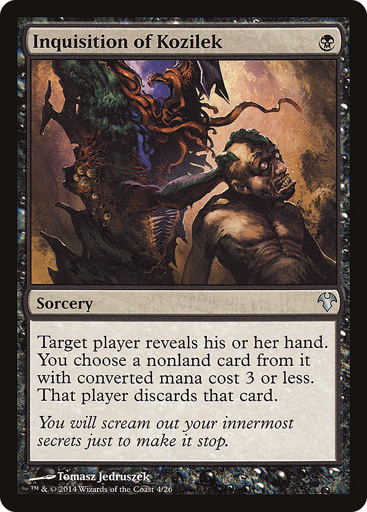 Target player reveals their hand. You choose a nonland card from it with mana value 3 or less. That player discards that card.