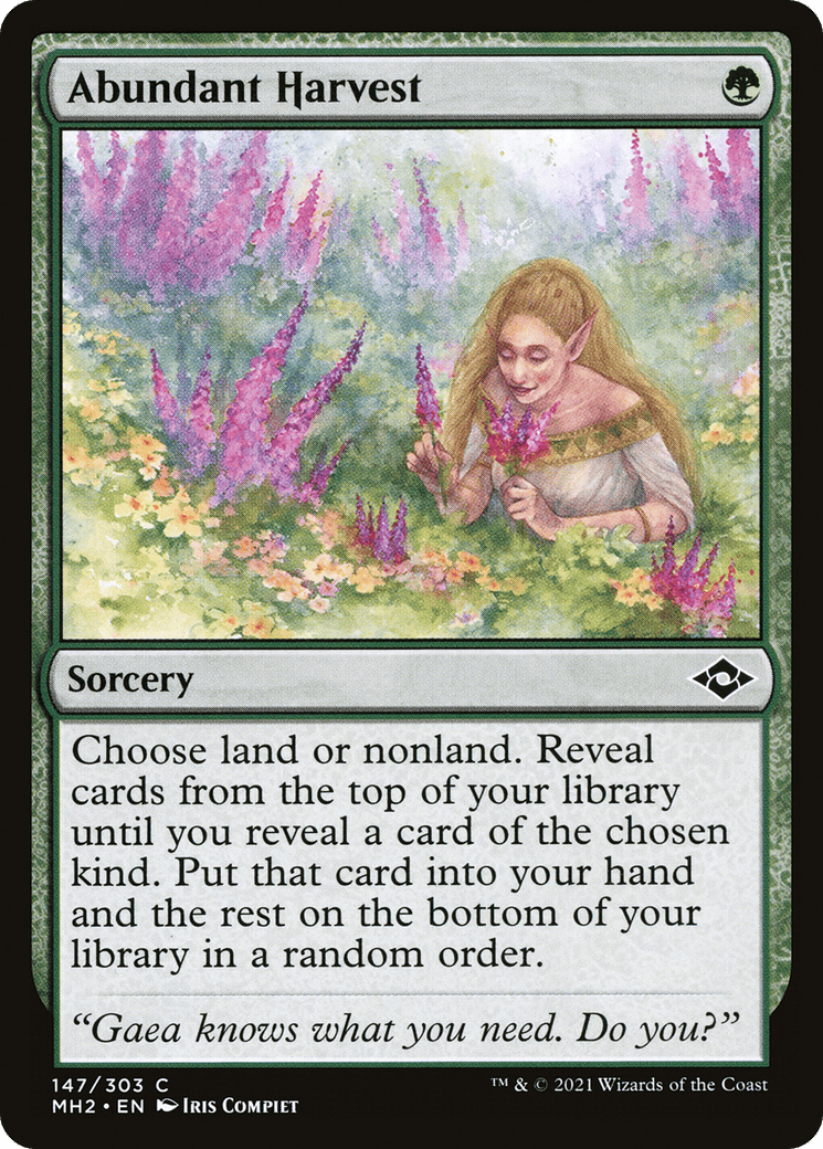 Choose land or nonland. Reveal cards from the top of your library until you reveal a card of the chosen kind. Put that card into your hand and the rest on the bottom of your library in a random order.