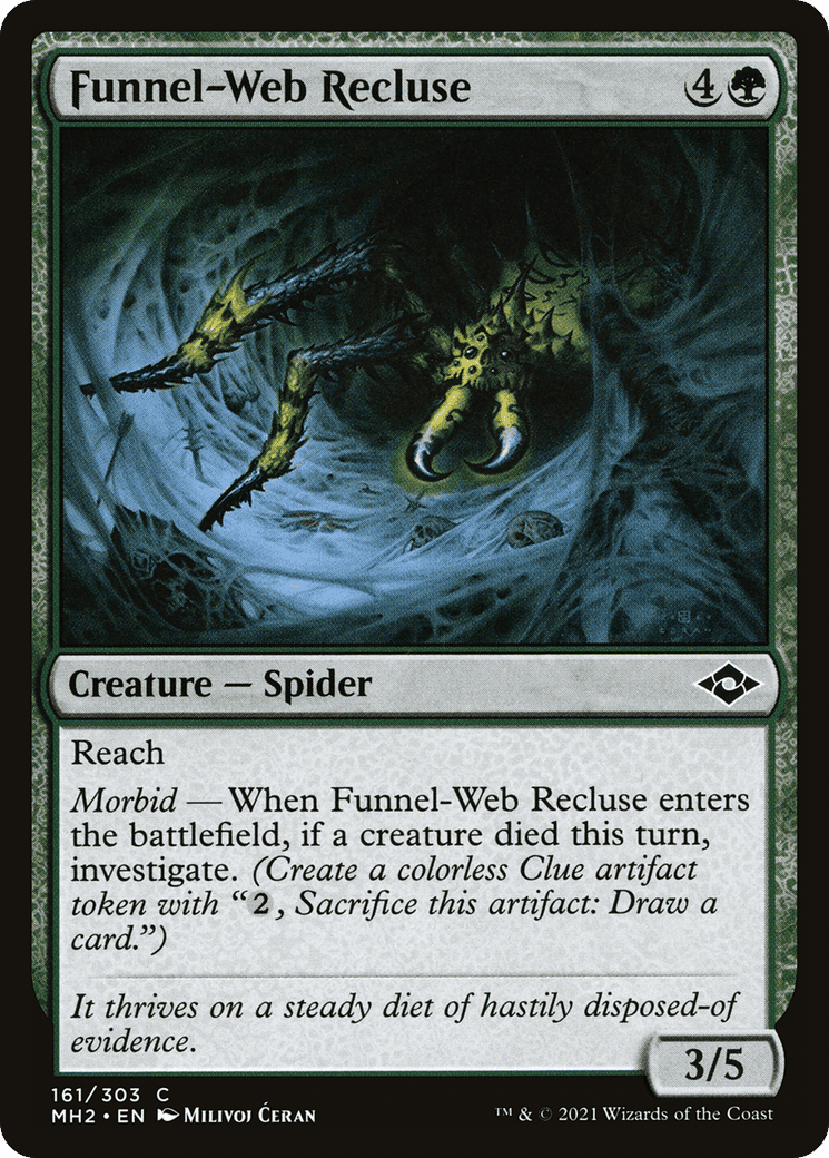 Morbid – When this creature enters, if a creature died this turn, investigate. (Create a Clue token. It’s an artifact with “{2}, Sacrifice this token: Draw a card.”)