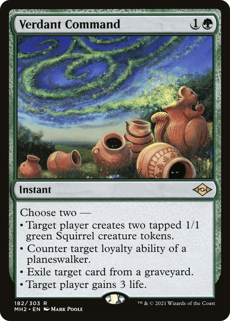 – Target player creates two tapped 1/1 green Squirrel creature tokens.