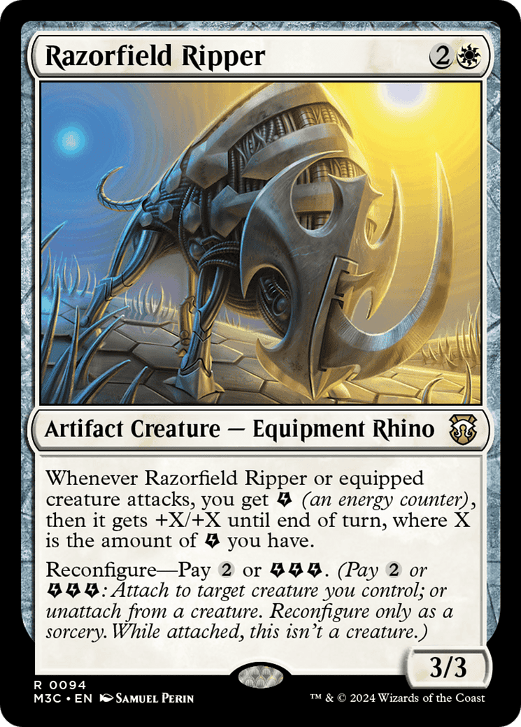 Reconfigure-Pay {2} or {E}{E}{E}. (Pay {2} or {E}{E}{E}: Attach to target creature you contr