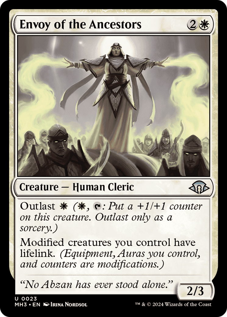 Modified creatures you control have lifelink. (Equipment, Auras you control, and counters are modifications.)