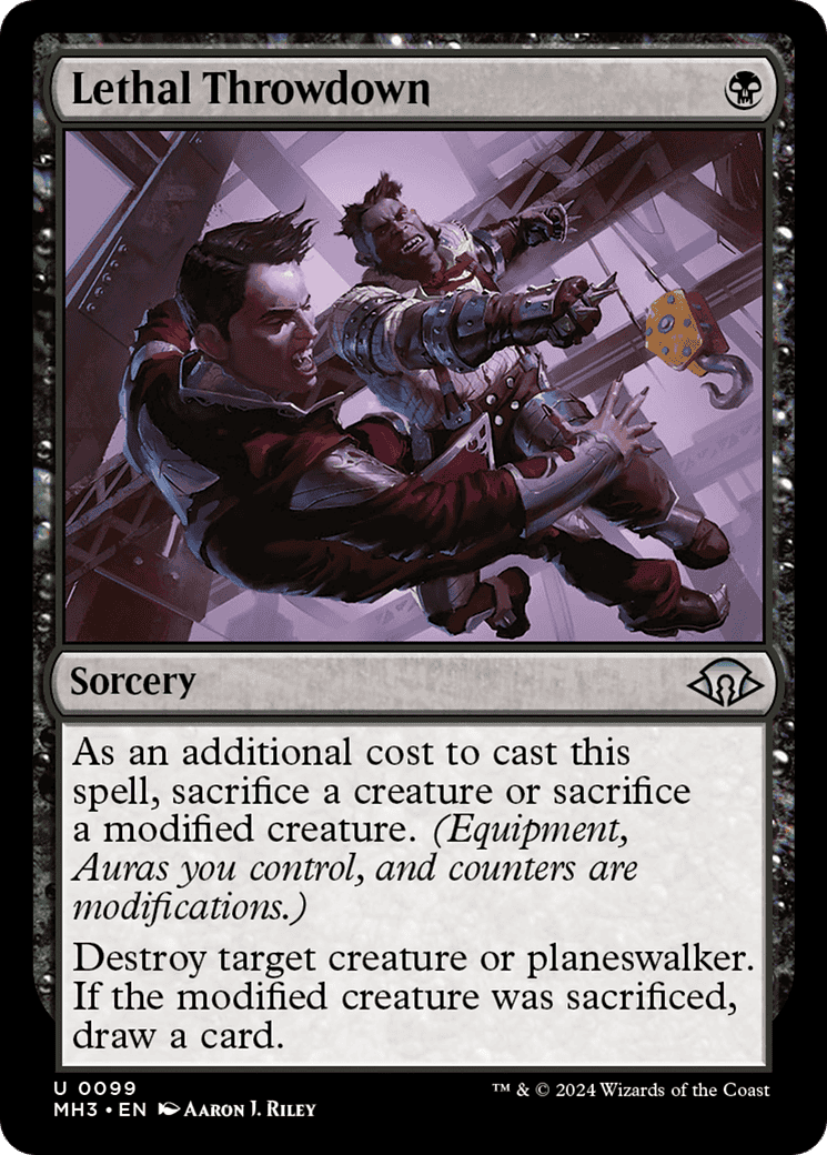 As an additional cost to cast this spell, sacrifice a creature or sacrifice a modified creature. (Equipment, Auras you control, and counters are modifications.)