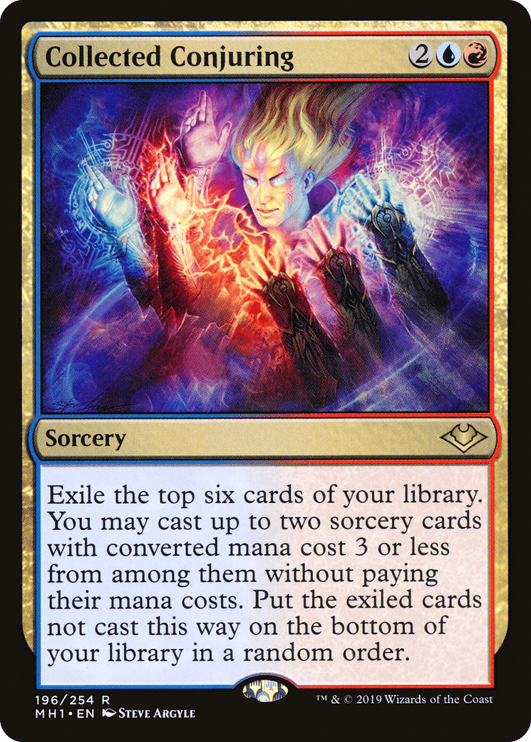 Exile the top six cards of your library. You may cast up to two sorcery spells with mana value 3 or less from among them without paying their mana costs. Put the exiled cards not cast this way on the bottom of your library in a random order.
