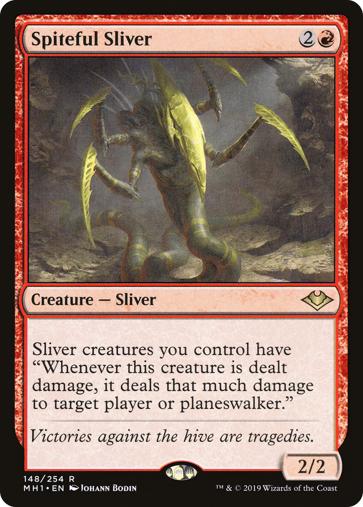 Sliver creatures you control have “Whenever this creature is dealt damage, it deals that much damage to target player or planeswalker.”