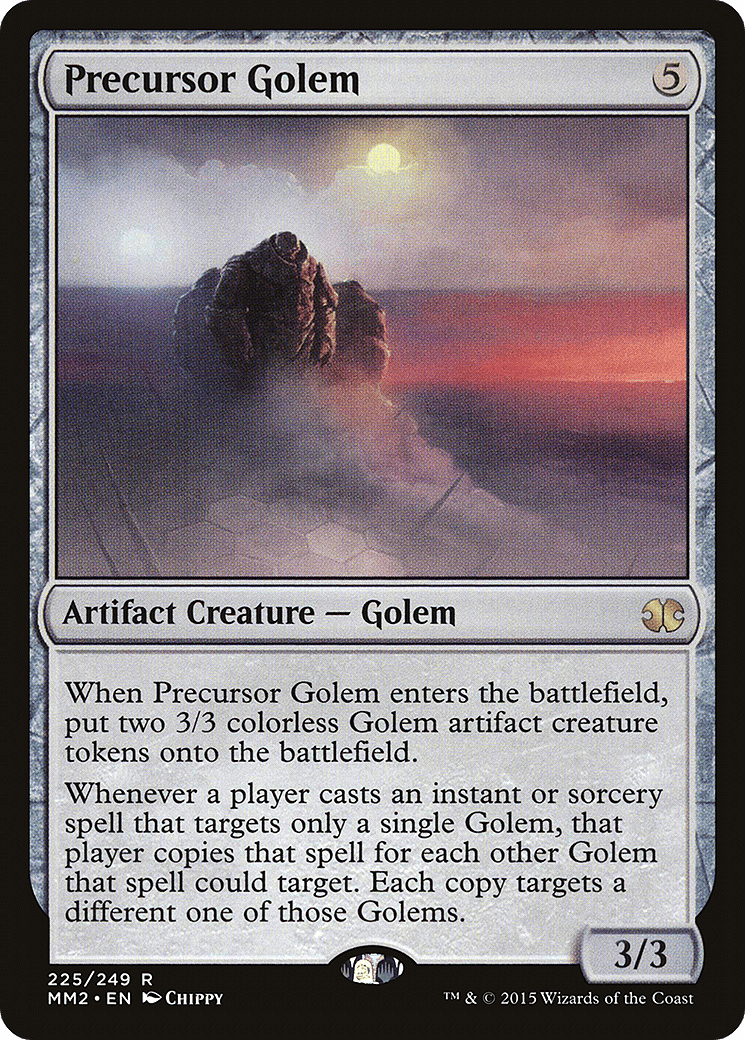 Whenever a player casts an instant or sorcery spell that targets only a single Golem, that player copies that spell for each other Golem that spell could target. Each copy