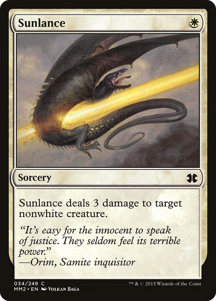 Sunlance deals 3 damage to target nonwhite creature.