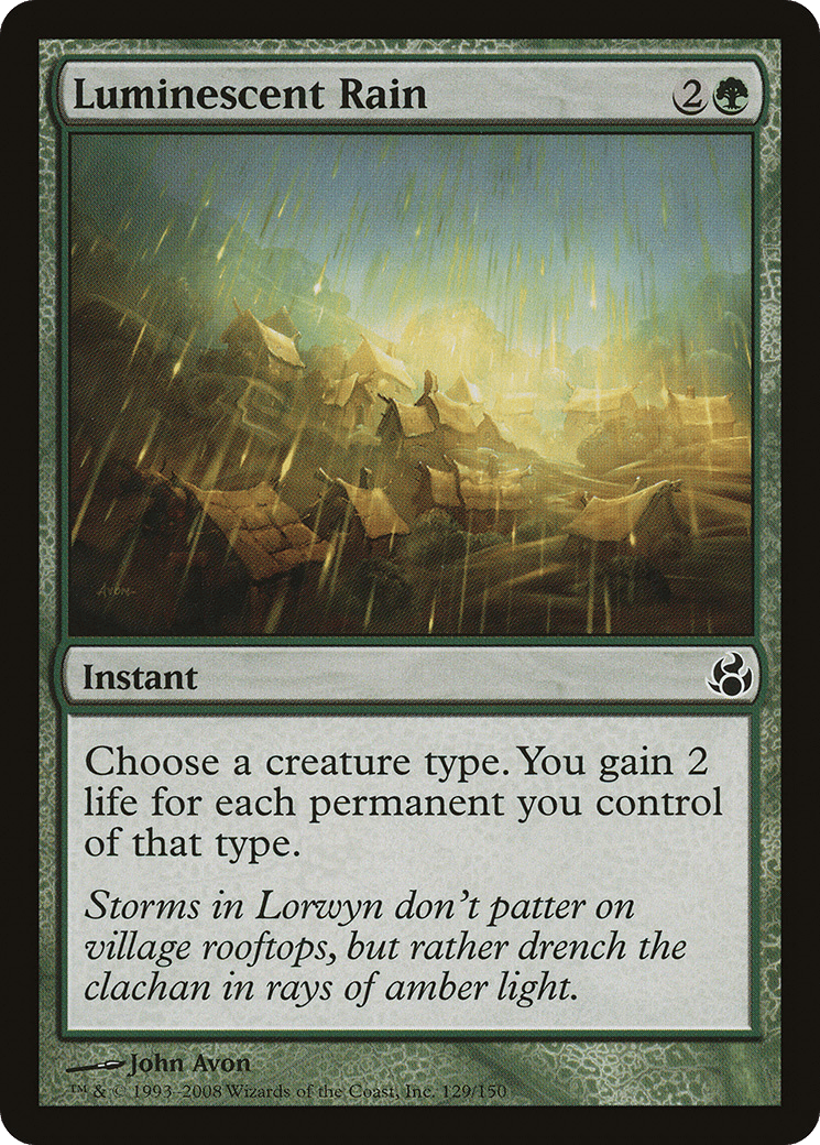 Storms in Lorwyn don’t patter on village rooftops, but rather drench the clachan in rays of amber light.