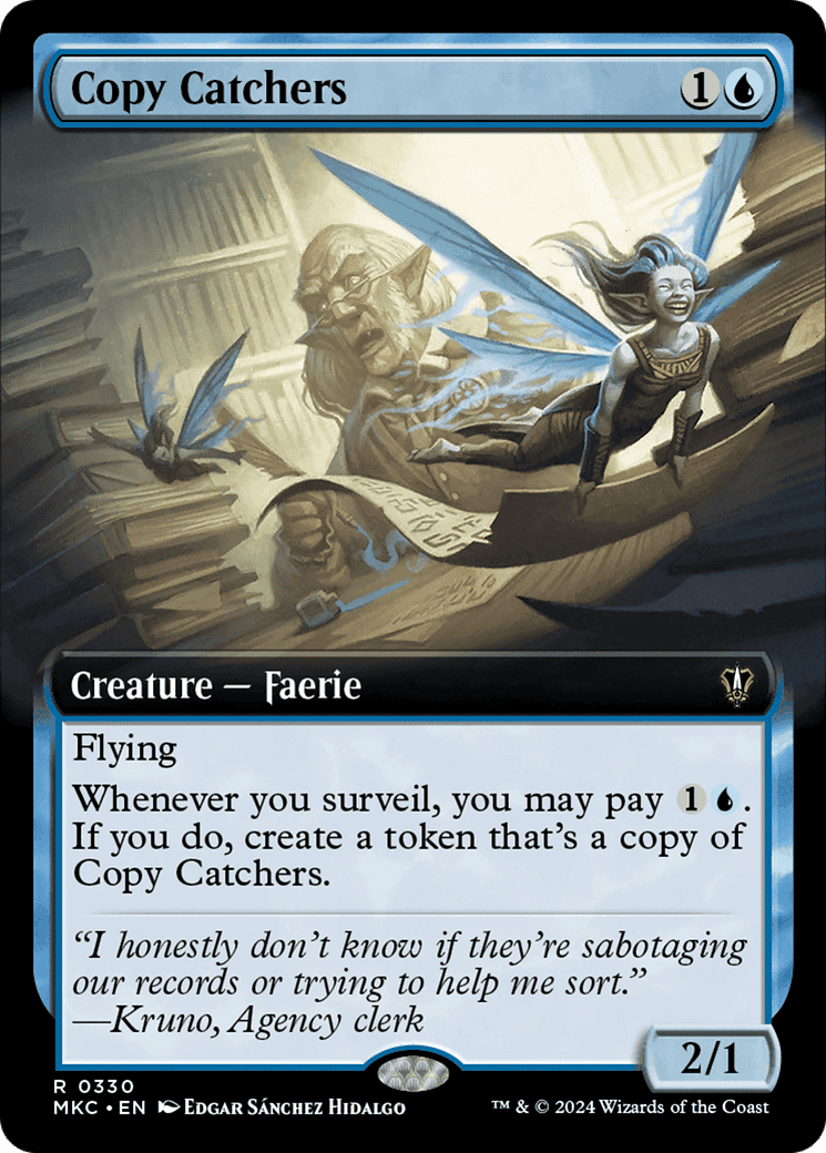 Whenever you surveil, you may pay {1}{U}. If you do, create a token that’s a copy of this creature.