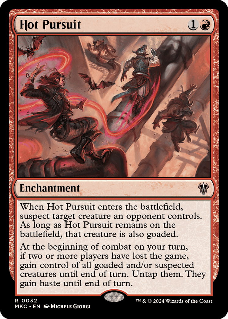 When this enchantment enters, suspect target creature an opponent controls. As long as this enchantment remains on the battlefield, that creature is also goaded.