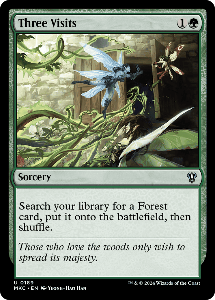 Search your library for a Forest card, put it onto the battlefield, then shuffle.