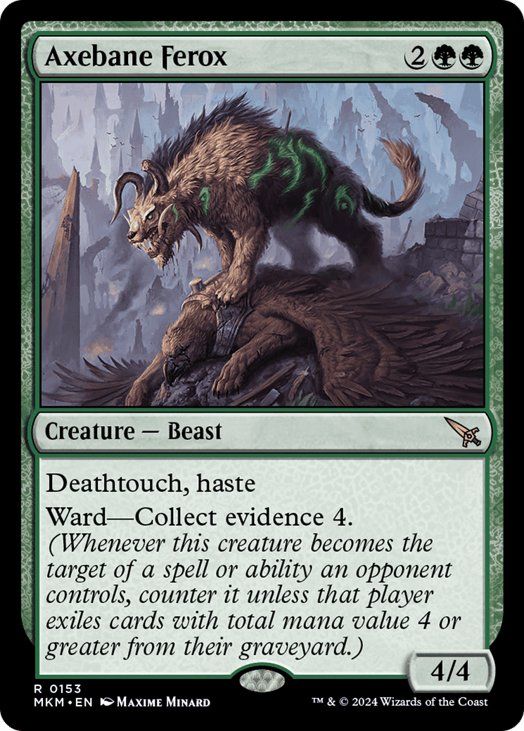 Ward-Collect evidence 4. (Whenever this creature becomes the target of a spell or ability an opponent controls, counter it unless that player exiles cards with total mana value 4 or greater from their graveyard.)