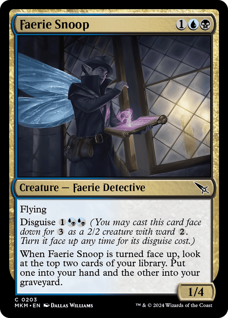 Disguise {1}{U/B}{U/B} (You may cast this card face down for {3} as a 2/2 creature with ward {2}. Turn it face up any time for its disguise cost.)