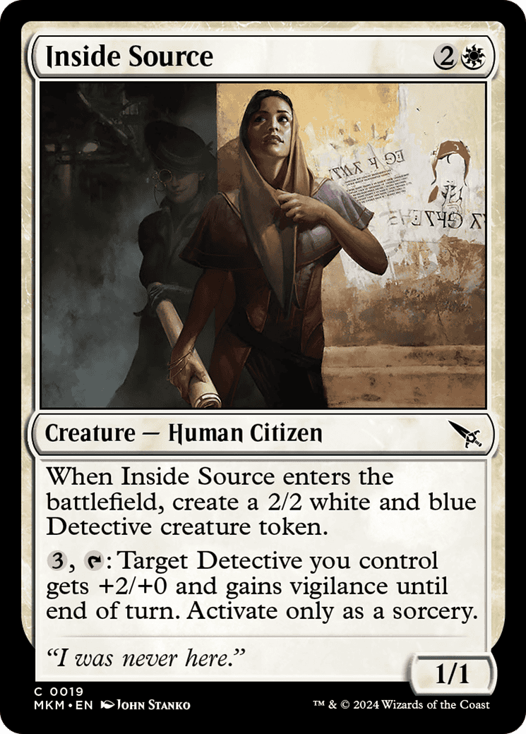 When this creature enters, create a 2/2 white and blue Detective creature token.
