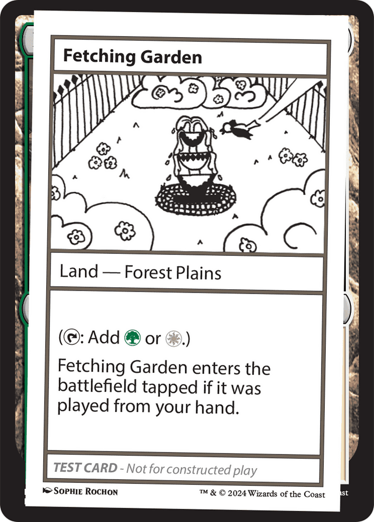 ({T}: Add {G} or {W}.) Fetching Garden enters the battlefield tapped if it was played from your hand.