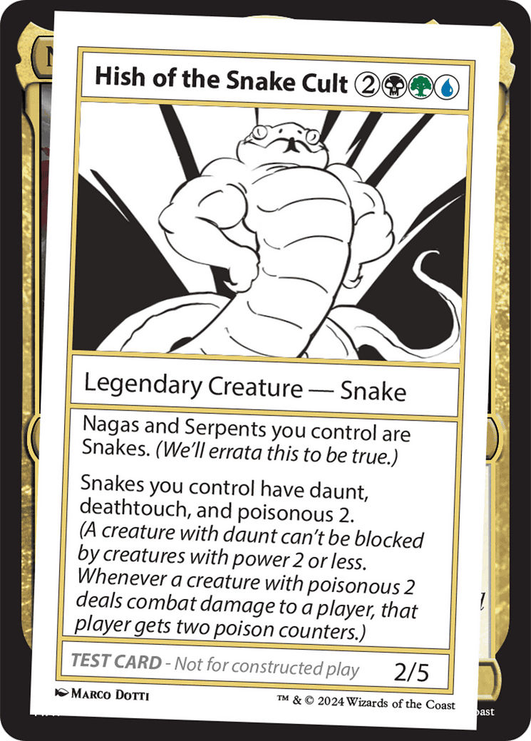 Snakes you control have daunt, deathtouch, and poisonous 2. (A creature with daunt can’t be blocked by creatures with power 2 or less. Whenever a creature with poisonous 2 deals co
