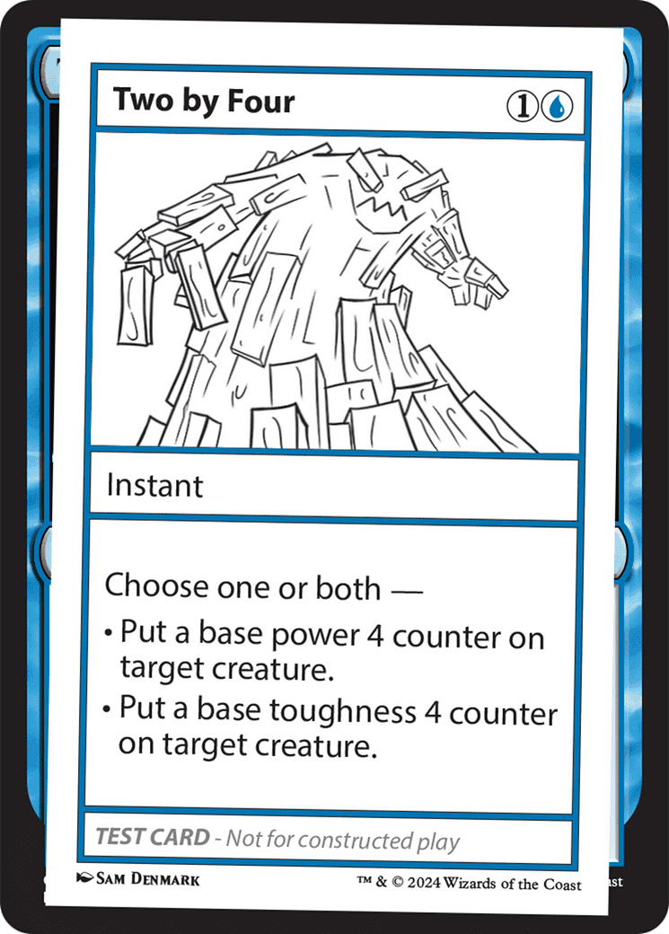 Choose one or both – – Put a base power 4 counter on target creature. – Put a base toughness 4 counter on target creature.