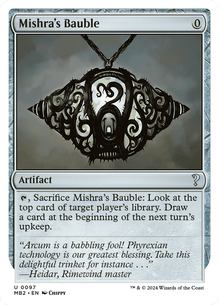 {T}, Sacrifice this artifact: Look at the top card of target player’s library. Draw a card at the beginning of the next turn’s upkeep.