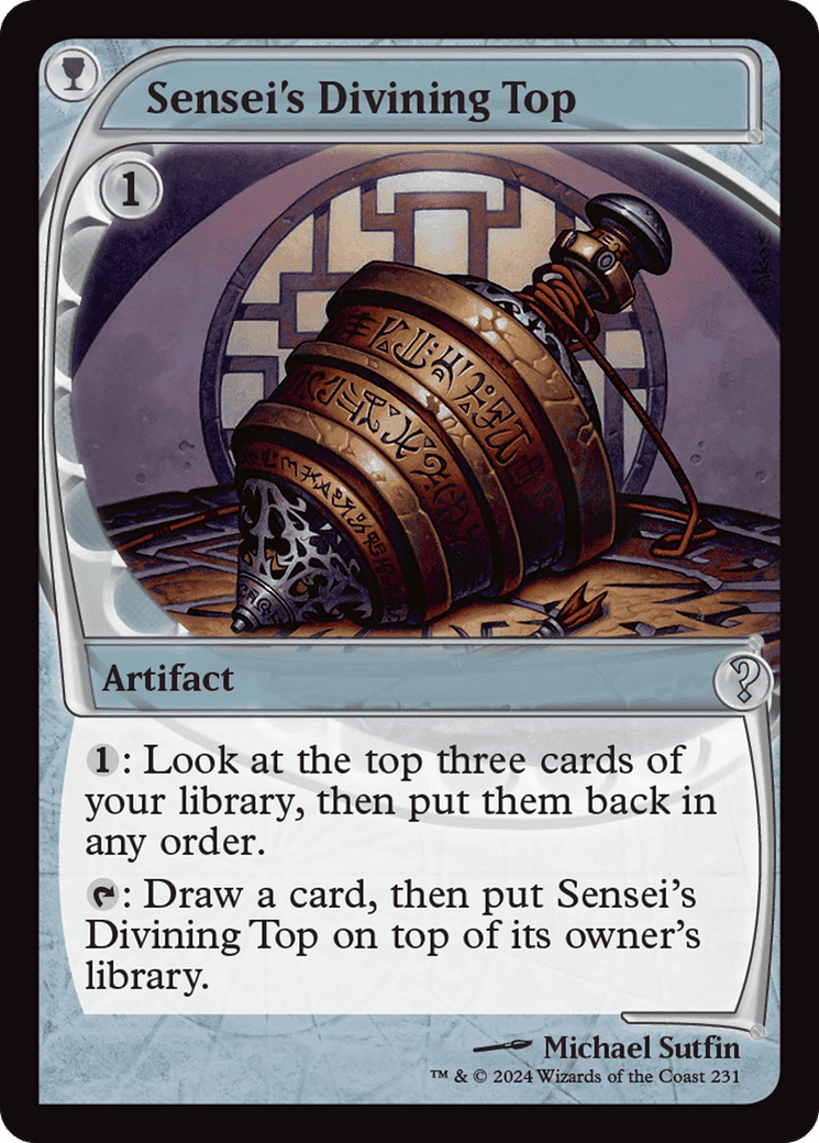 {1}: Look at the top three cards of your library, then put them back in any order. {T}: Draw a card, then put this artifact on top of its owner’s library.